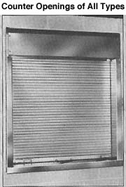 COUNTER SHUTTER SPECIFICATIONS CURTAIN: Is constructed of extruded aluminum. "Alloy 6063" flat faced Midget Stats. Width of slats 1-15/16". Depth of crown
